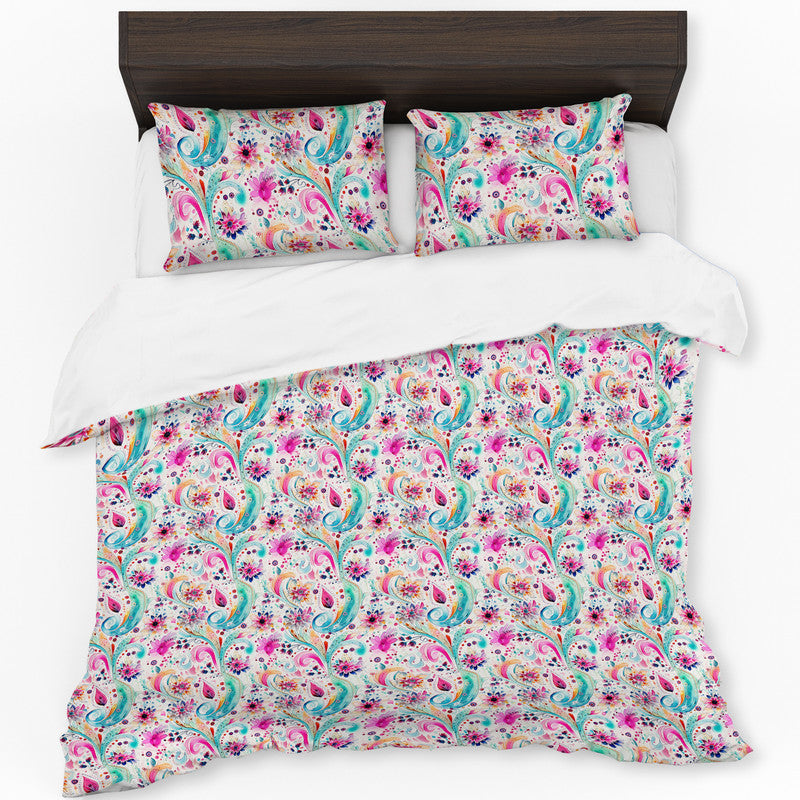 Aqua Pink And Swirls Duvet Cover Set