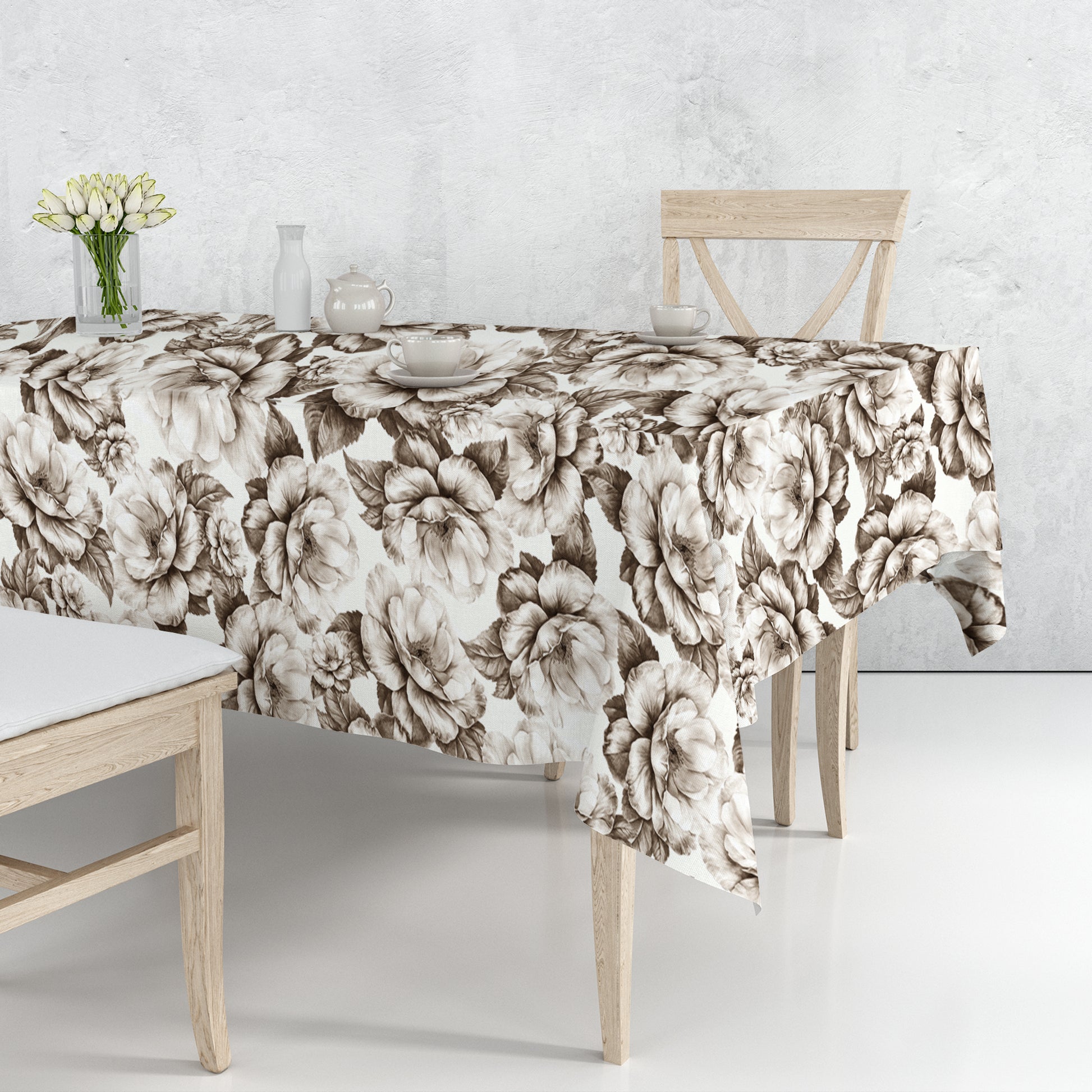 Beige Bloom Rectangle Tablecloth By Mark Van Vuuren