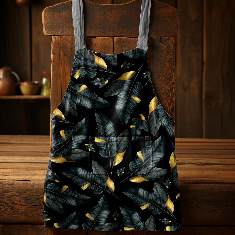 Black and Gold Leaf Pattern Medium Length Apron By Mark Van Vuuren