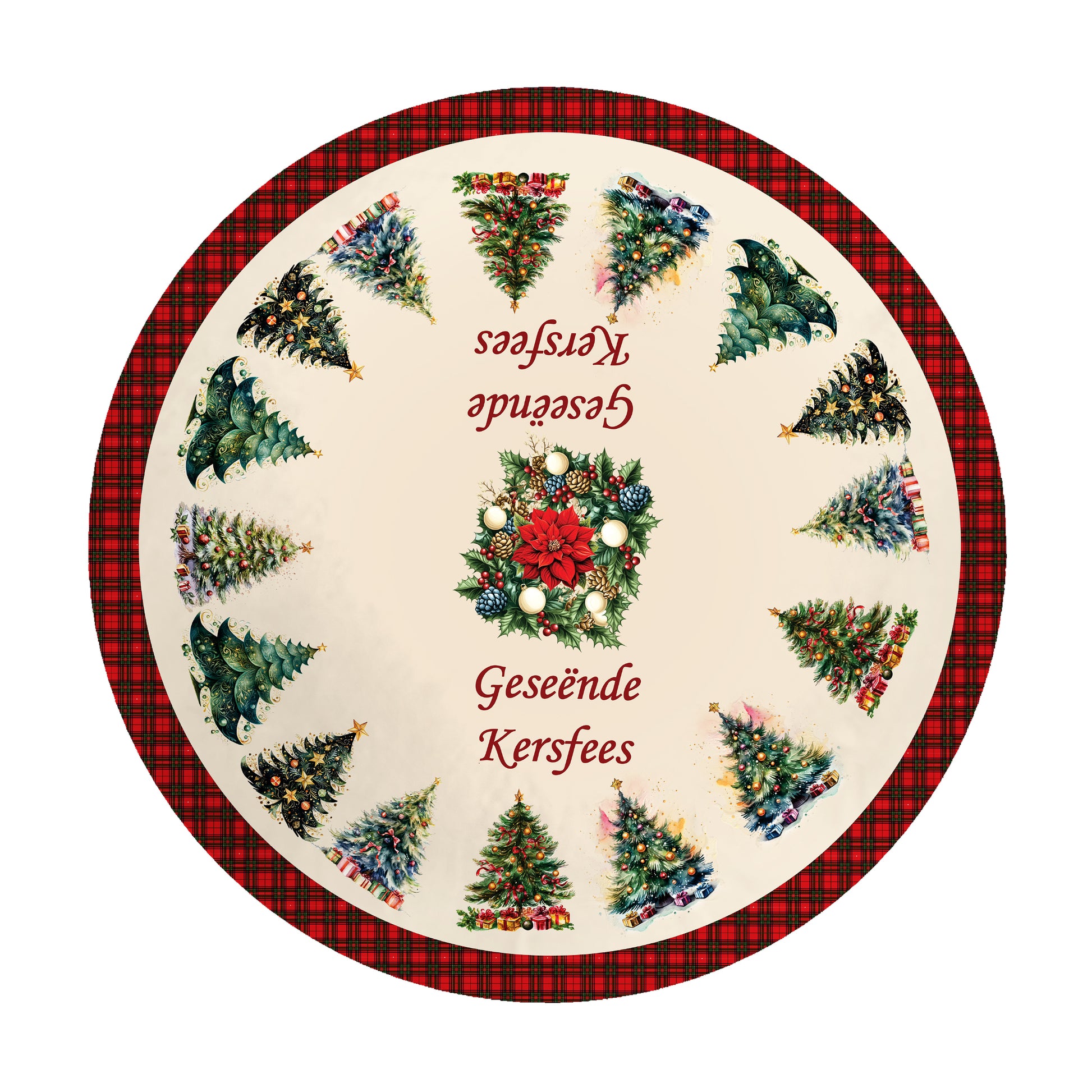 Circle of Christmas Trees Round Tablecloth