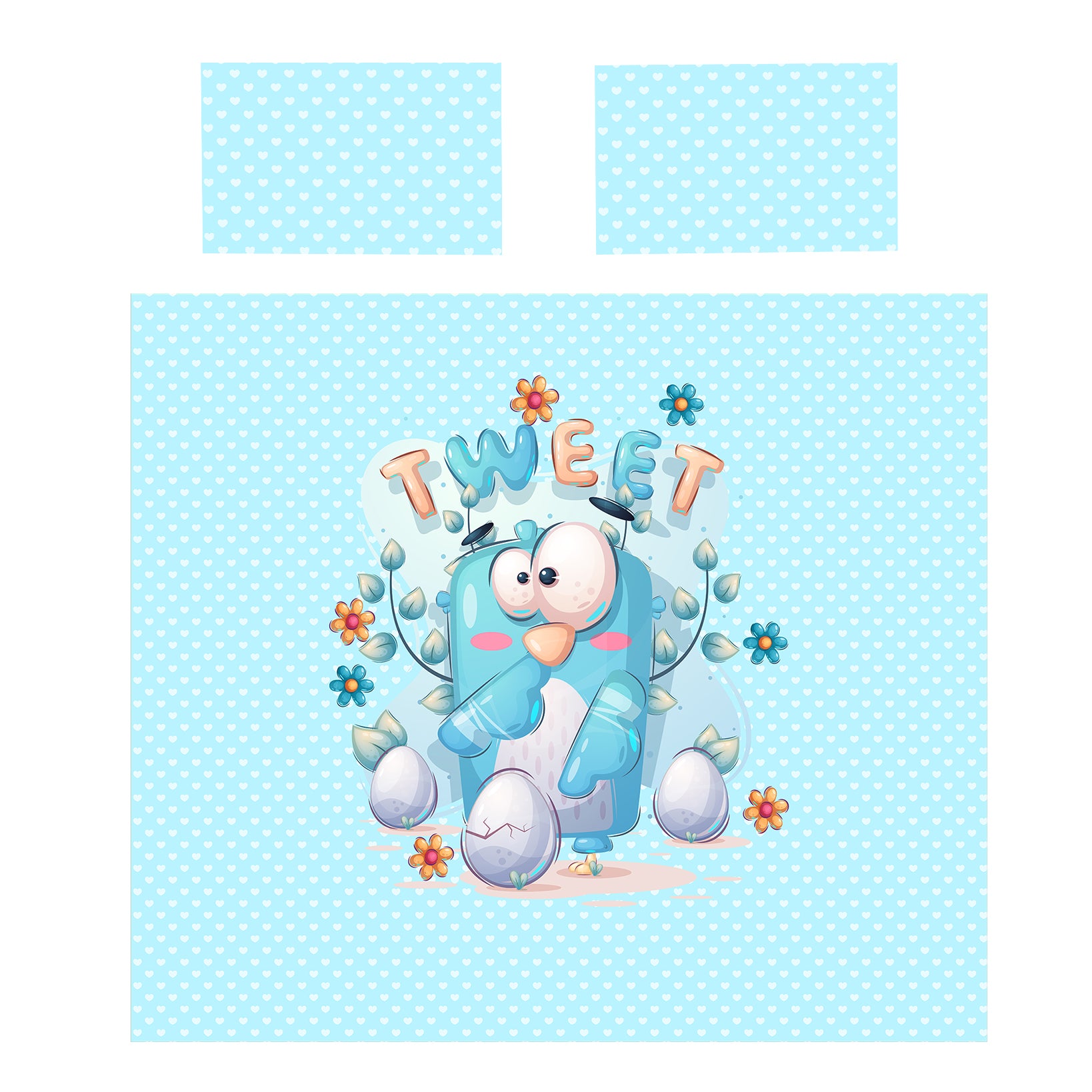 Cute Blue Bird Kids Duvet Cover Set