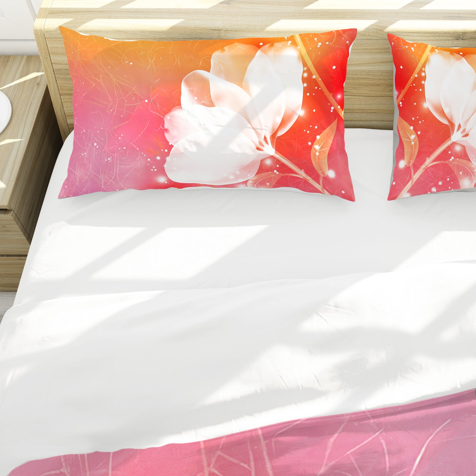 Fiery Pastel White Flowers Duvet Cover Set