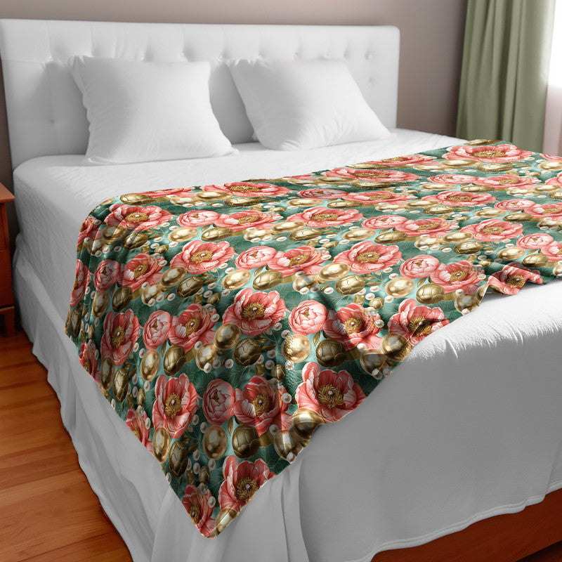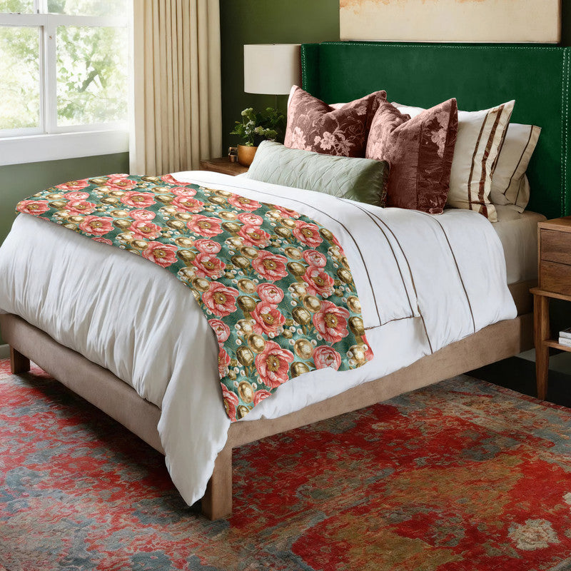 Gold and Teal Light Bed Throw