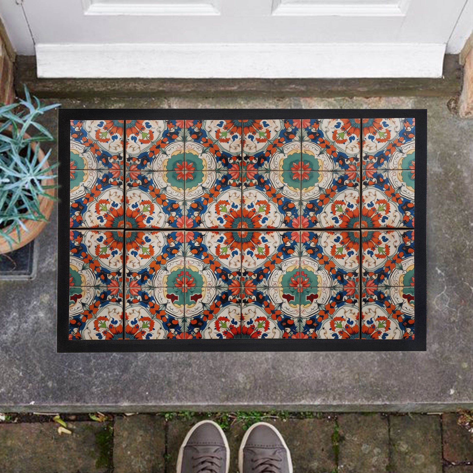 Hypnotic Flower Tiles Door Mat
