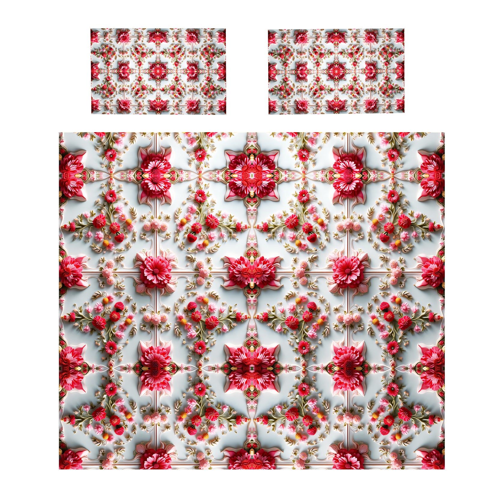 Pink Flower Tiles Duvet Cover Set