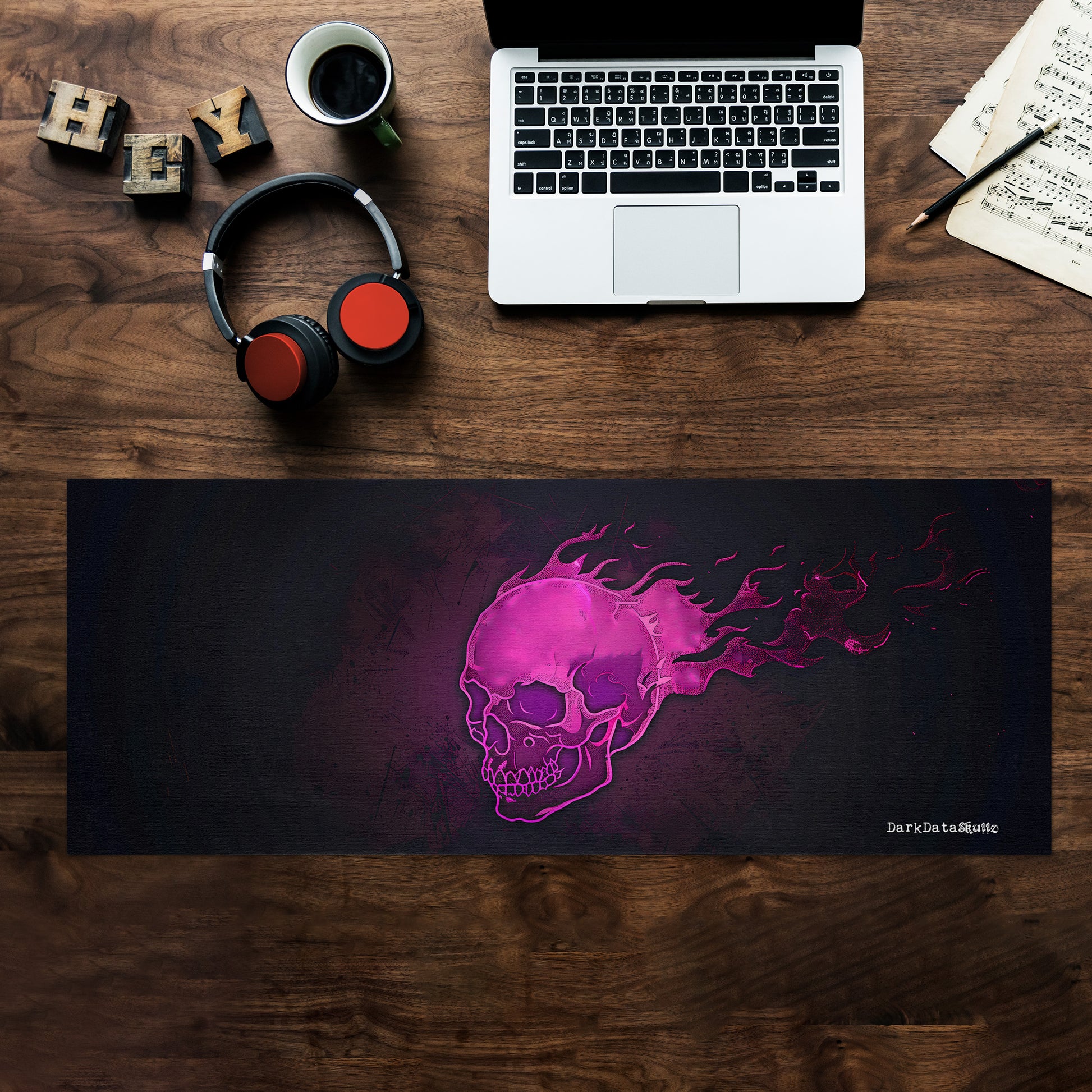 Pink Gamer Skull by Wikus Schalkwyk Large Desk Pad
