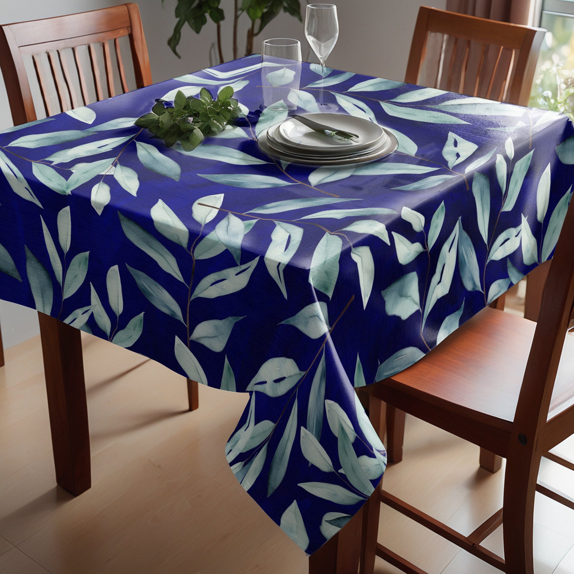 Royal Blue Waterpainted Blue Leaves By Mark Van Vuuren Square Tablecloth