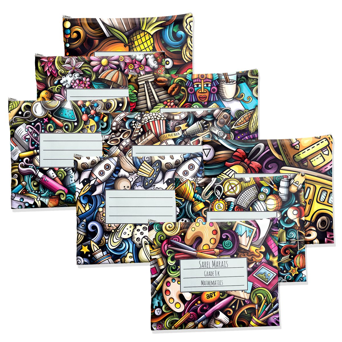 Subject-Savvy 9-Pack Book Bags - Colourful Doodle