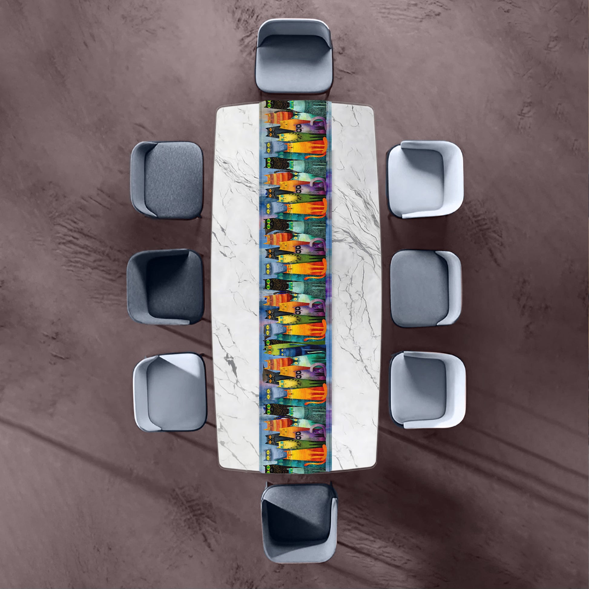 Whimsical Feline Spectrum Table Runner by Wikus Schalkwyk